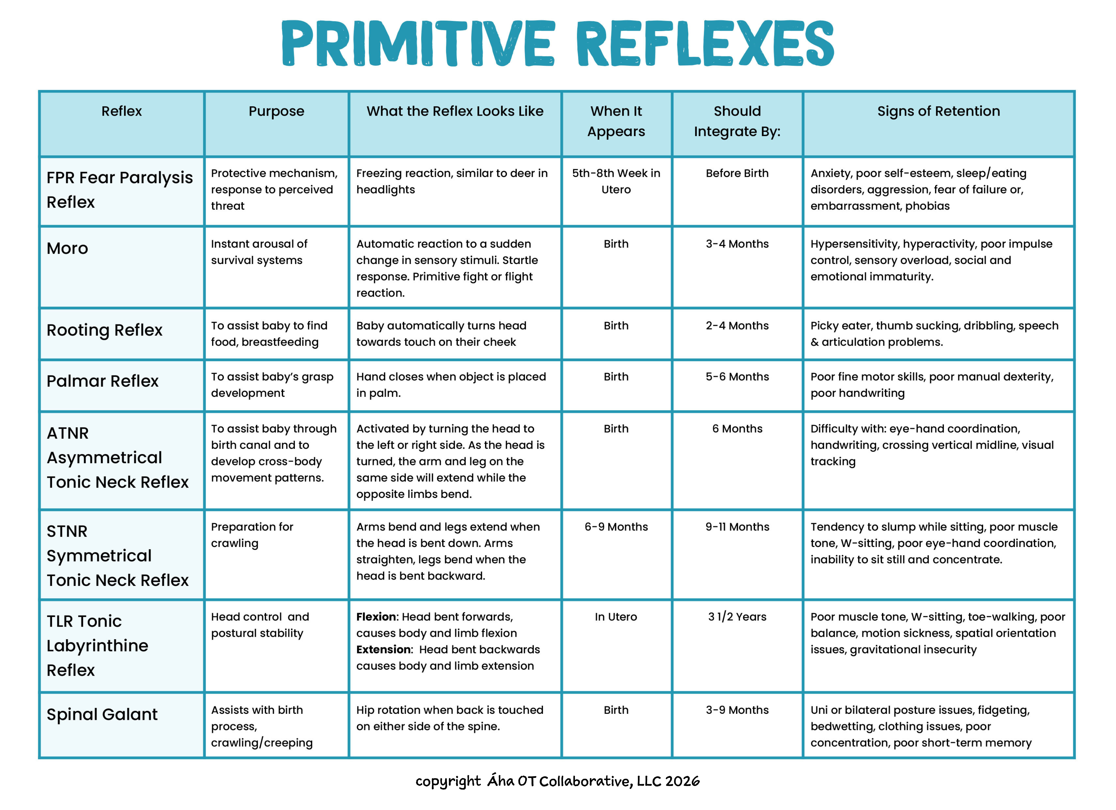 A description of the most common reflexes addressed in OT.